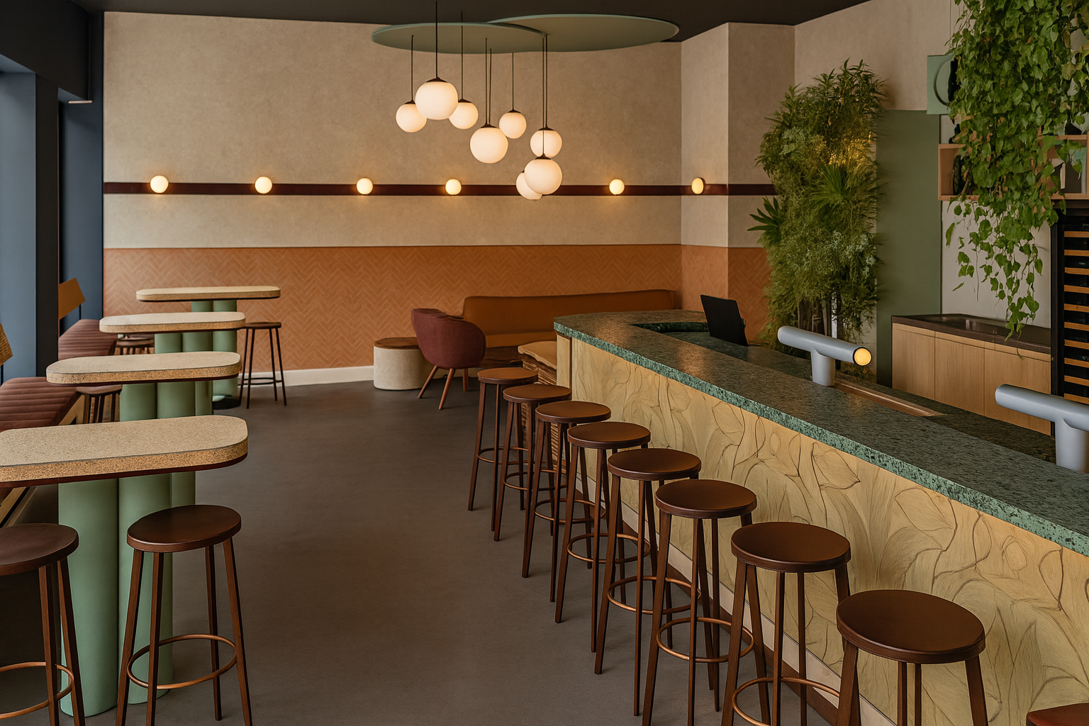Voor Valdi Bar ontwikkelde Studio Maite een 3D-ontwerp en render, samen met een uitgewerkt lay-outplan. Het concept creëerde een warme, levendige sfeer met maatwerkdetails, rijke materialen en kleuraccenten — ontworpen om de ruimte optimaal te laten functioneren én uitnodigend aan te laten voelen.